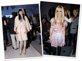 I’m poised and ready; you can feel the energy in the room where everyone is just ready to take in Luca Luca’s Fall/Winter 2011 collection! Let’s take a look around the room and see who is here oh I see Model Irina Pantaeva and Tinsley Mortimer who is wearing a Luca Luca dress just beautiful: